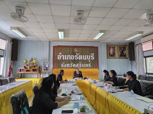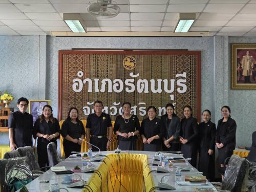 ในการนี้ พันจ่าเอก สุวิน ห้องแซง นายอำเภอรัตนบุรี ได้ให้เกียรติเข้าร่วมต้อนรับฯ พร้อมสำนักงานพัฒนาชุมชนจังหวัดสุรินทร์โดยนางชุติมา บุญประเสริฐสิทธิ์ พัฒนาการจังหวัดสุรินทร์ ได้มอบหมายนางสาวฉัตรระวี ภาสตโรจน์ ผู้อำนวยการกลุ่มงานยุทธศาสตร์การพัฒนาชุมชน พร้อมด้วยนางสาวลาภา สุขสมาน พัฒนาการอำเภอรัตนบุรี และเจ้าหน้าที่พัฒนาชุมชนจังหวัด/อำเภอ ร่วมต้อนรับ และรายงานผลการดำเนินงาน ปัญหา/อุปสรรค พร้อมรับฟังข้อเสนอแนะในการปฏิบัติงาน ณ ห้องประชุมที่ว่าการอำเภอรัตนบุรี จังหวัดสุรินทร์