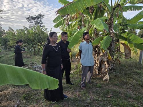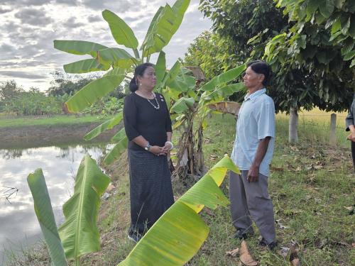 ต่อมาได้เดินทางไปยังศูนย์เรียนรู้การพัฒนาคุณภาพชีวิตตามหลักทฤษฎีใหม่ประยุกต์สู่ “โคก หนอง นา” ของนายฉัตร พิมพ์ศรี บ้านเลขที่ 148 หมู่ที่ 16 ตำบลเมืองแก อำเภอท่าตูม จังหวัดสุรินทร์ นางอรุณรัตน์ ชิงชนะ ผู้ตรวจราชการกรมการพัฒนาชุมชน ได้กำชับให้เจ้าของแปลงได้ดำเนินการให้เป็นไปตามแนวทางของกรมการพัฒนาชุมชนกำหนด เร่งดำเนินการปรับปรุงพื้นที่ตามความเหมาะสมให้สามารถเป็นศูนย์เรียนรู้ฯของชุมชน เกิดการเกื้อกูลซึ่งกันและกันในชุมชน เกิดความคุ้มค่ากับเงินงบประมาณที่ได้รับการจัดสรรต่อไป