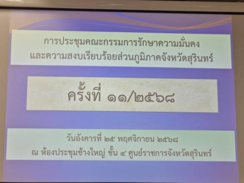 นายจำเริญ แหว็นเพชร รองผู้ว่าราชการจังหวัด รักษาการแทน ผู้ว่าราชการจังหวัดสุรินทร์ เป็นประธานการประชุมคณะกรรมการรักษาความมั่นคงและความสงบเรียบร้อยส่วนภูมิภาคจังหวัดสุรินทร์ ที่ 11/2568