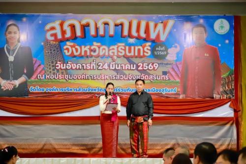 ✨ จังหวัดสุรินทร์ จัดกิจกรรม "สภากาแฟ” ประจำเดือน มีนาคม 2569 ณ หอประชุมองค์การบริหารส่วนจังหวัดสุรินทร์ โดยมีองค์การบริหารส่วนจังหวัดสุรินทร์ และเทศบาลเมืองสุรินทร์ร่วมเป็นเจ้าภาพ เพื่อสร้างการมีส่วนร่วมระหว่างส่วนราชการ หน่วยงานภาครัฐและเอกชนในการปฏิบัติงาน เพื่อให้เกิดผลสัมฤทธิ์ต่อภารกิจของรัฐและประโยชน์สุขของประชาชน โดยจัดให้มีการพบปะ ระดมความคิดเห็นจากทุกภาคส่วนในรูปแบบการประชุมอย่างไม่เป็นทางการ โดยมี นายจำเริญ แหวนเพ็ชร ผู้ว่าราชการจังหวัดสุรินทร์ พร้อมด้วยนางชไมพร เเหวนเพ็ชร นายกเหล่ากาชาดจังหวัดสุรินทร์ รองผู้ว่าราชการจังหวัด หัวหน้าส่วนราชการ รัฐวิสาหกิจ ภาคเอกชน และตัวแทนองค์กร ภาคประชาชนได้ร่วมกิจกรรมฯ